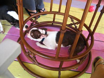 A few more pcitures from yesterday’s dog romp. I am waiting for he 8:30 NFL game to come on and basically waiting out the night; tomorrow is dentist day so I shall be posting from home. I will not be able to speak (to secure avoidance of dry socket – an afliction I do not wish even upon my enemy) so I might post a bunch, depending on how I feel. If I recall the summer ’05 when I had the same procedure, I didn’t feel hungry or anxious, which I sometimes do when I am home sick. I remember sleeping a lot and feeling generally blah. I might watch movies. I may even bake. I know that’s weird but it’s a task I can complete in silence.