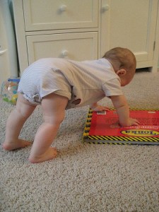 He’ll pull up but only if he really wants to get at something. Otherwise, he doesn’t seem to care. It’s like all I want to see him do is cruise around the furniture. Sure, it’s actually kind of early for that but I torture myself by lurking on message boards where half the kids are starting to take actual steps by themselves now. Both Ash and I walked very early so we sort of put that pressure on him, in our heads anyway. You can’t make kids walk before they’re ready. I’m learning that. I’m learning a lot of patience from this whole affair, actually. Sometimes he really tries it though and I find myself just placing him on the floor and walking away for a second. Back away from the child, ma’am, my brain tells me. Before I get too agitated. But on the whole, this kid brings me nothing but joy. Pure and unadulterrated.