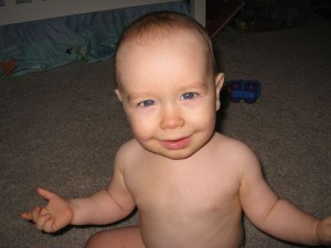 There were some times during this year when I allowed myself to compare my child to others. This will make you insane. It is not healthy to think that your kid will do anything remotely similar at the same time as anyone else’s kid. My friend’s daughter, two weeks younger, did almost everything before Elliot, except get teeth. Elliot has eight and she only has two, still. Babies, I have learned, do things at their own pace. In Elliot’s case, he may have been a couple weeks behind the “norm” on such activities as sitting up, crawling, and walking but in time, he got the hang of all of them. In fact, once he gets it, he takes off and never looks back. That’s where we are with walking. The last two days, he’s been taking one step then two. He’s so close. I give him a week without the pretense of having to live up to his parents’ standards (Ash and I both walked very early.)
