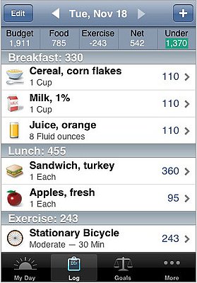While bored last Friday afternoon, I logged onto my iTouch and browsed the free apps. I stumbled across a calorie counter program that allows you to track your food every day, set weight loss goals, etc. Of course I am not trying to lose weight right now, in the midst of a pregnancy. I am, however, trying to eat better and more well-rounded meals. It’s been really helpful in getting a good amount of calories in me and for tracking my exercise. In fact, it’s made me want to exercise more because it subtracts those burned calories form my overall count. Something about seeing that number go down is really motivating.