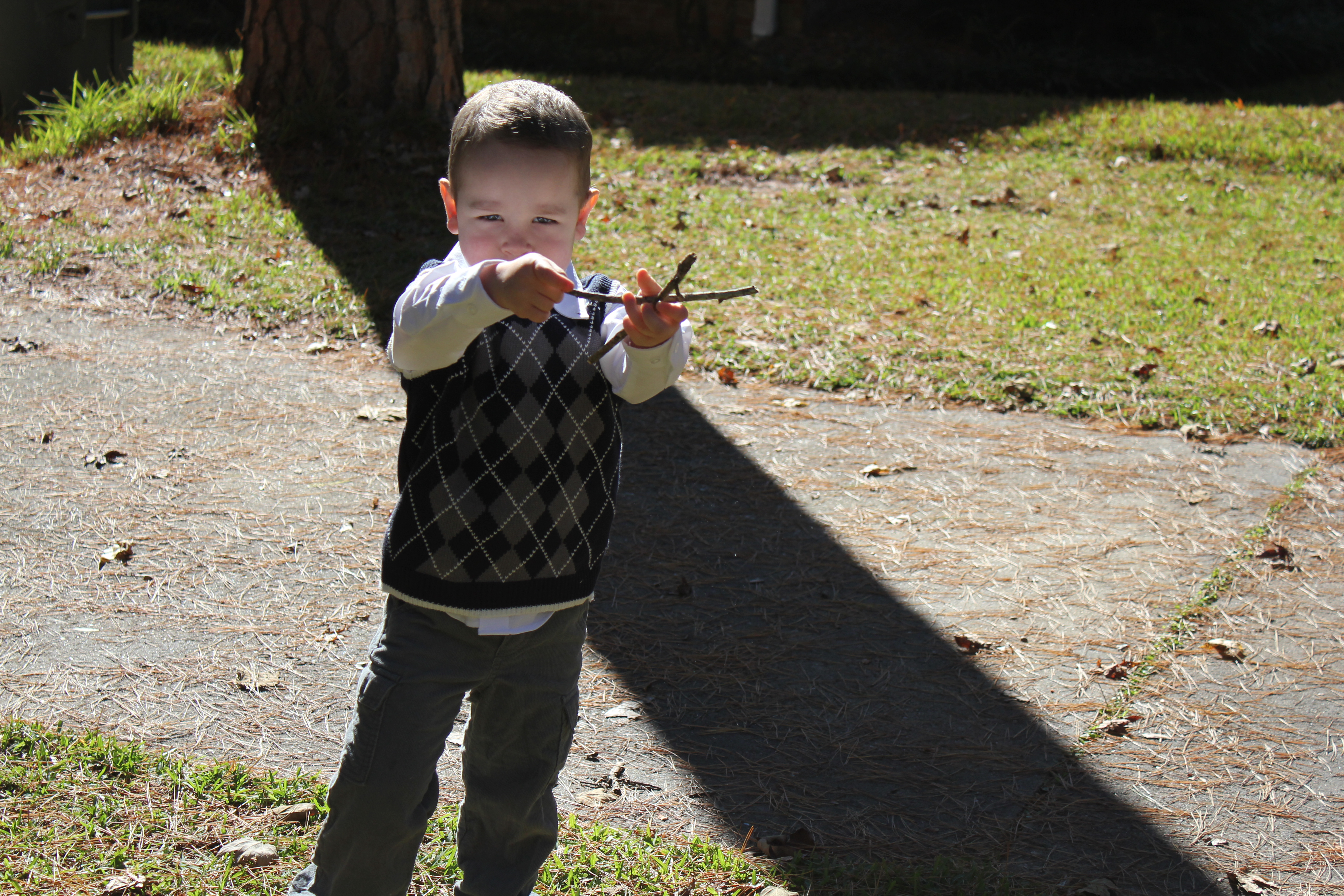 He’s fun to play with in the way all boys are; he enjoys being chased and playing games of keep away. Anything can be used as a gun and makes the “pew pew” noise, though I have no earthly idea where he got that…other than daycare. And even then, what kid ever thought that up, you know? I’m torn on the gun/violence thing. Most of the time I don’t give it a second thought but things will be going along just fine until he uses said “weapon” to hit one of the dogs. Game over, go to you room. And then we have to talk about that fine line between playtime and hurting someone/something.