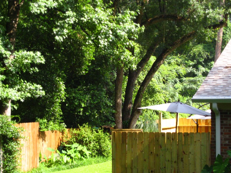 (The view from my deck towards the neighbour’s house, though in Spring)