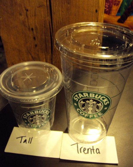 5.) The trenta size coffee cup. It holds more liquid than a human stomach can. The point?