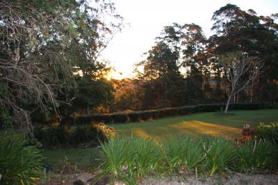 Hmm, tough question. It would be cliche to say my kids’ laughter (though that wins)  so maybe late afternoon: birds, wind, distant cars. Calmness.