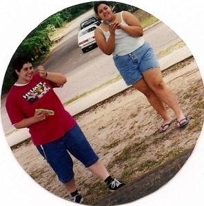 We didn’t have one of those sections but when I was 18, I really thought I’d go into some kind of art discipline and be starving but happy. I was really into photography at the time too.  I would say that no, I didn’t really meet that goal but it’s kind of better! Now, I have a senior picture – in print – on a bulletin board in our main office here. But I have no way to scan it in. So… too bad! BUT! Here’s a pic of me as a freshman in college. I’m on the left. I look totally different now!