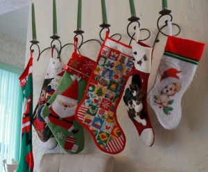 Pretty good. I would say I have about half the stuff I wanted to get. I’m basically done with the kids except for stocking stuffers, which is one of my favorite parts.(These are our stockings, but at my parents’ house)
