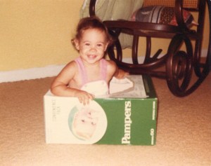 • Yesterday, I stayed home with the A/C workmen and I got so many little random things done: cleaned my camera lenses, took molds of the dog’s paws and painted them, hardcore cleaned the tubs, and scanned in a bunch of old photos. Look, here I am in a diaper box circa 1980: