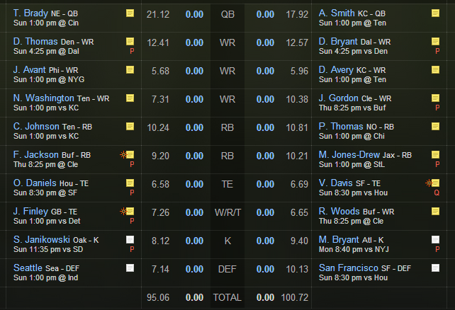 You have a great fantasy team! Mine’s doing pretty well this year too…I have Peyton Manning and Reggie Bush. I’m the only girl in an all guy league. 🙂
