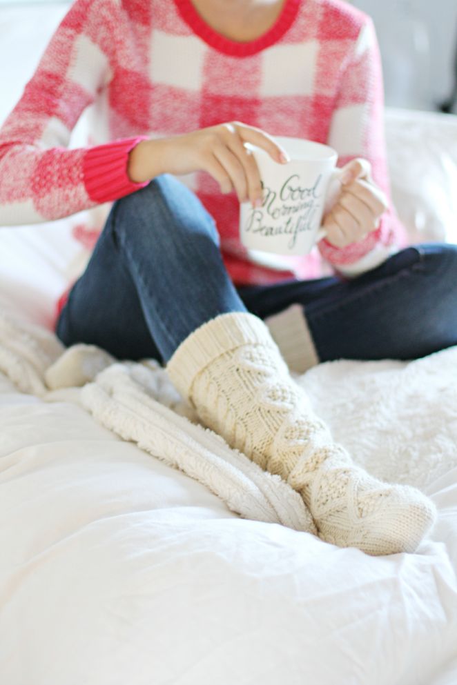 - I also love tea season and warm fuzzy sock season and cozy blanket season. I had some chunky socks like the ones in the below photo when I was little. I want some now!
