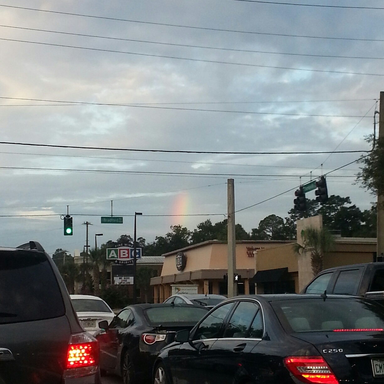 - We saw a rainbow over the liquor store this morning. (photo below) I am going to take this as a sign it’s going to be a good day!