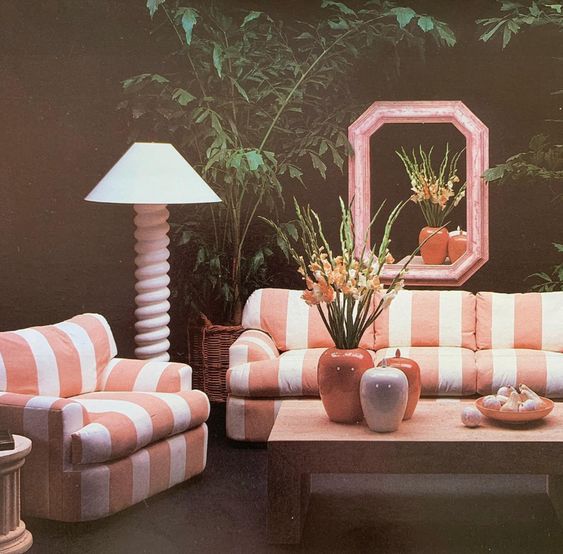 90s interior design was pretty interesting too. It’s like the 80s finally got its shit together and refined some of its outrageousness. They smoothed the edges of the pink wallpaper and fake ferns and wicker and it became a more tame tableau. I’m imagining this kind of 90s living room versus the 80s below it.