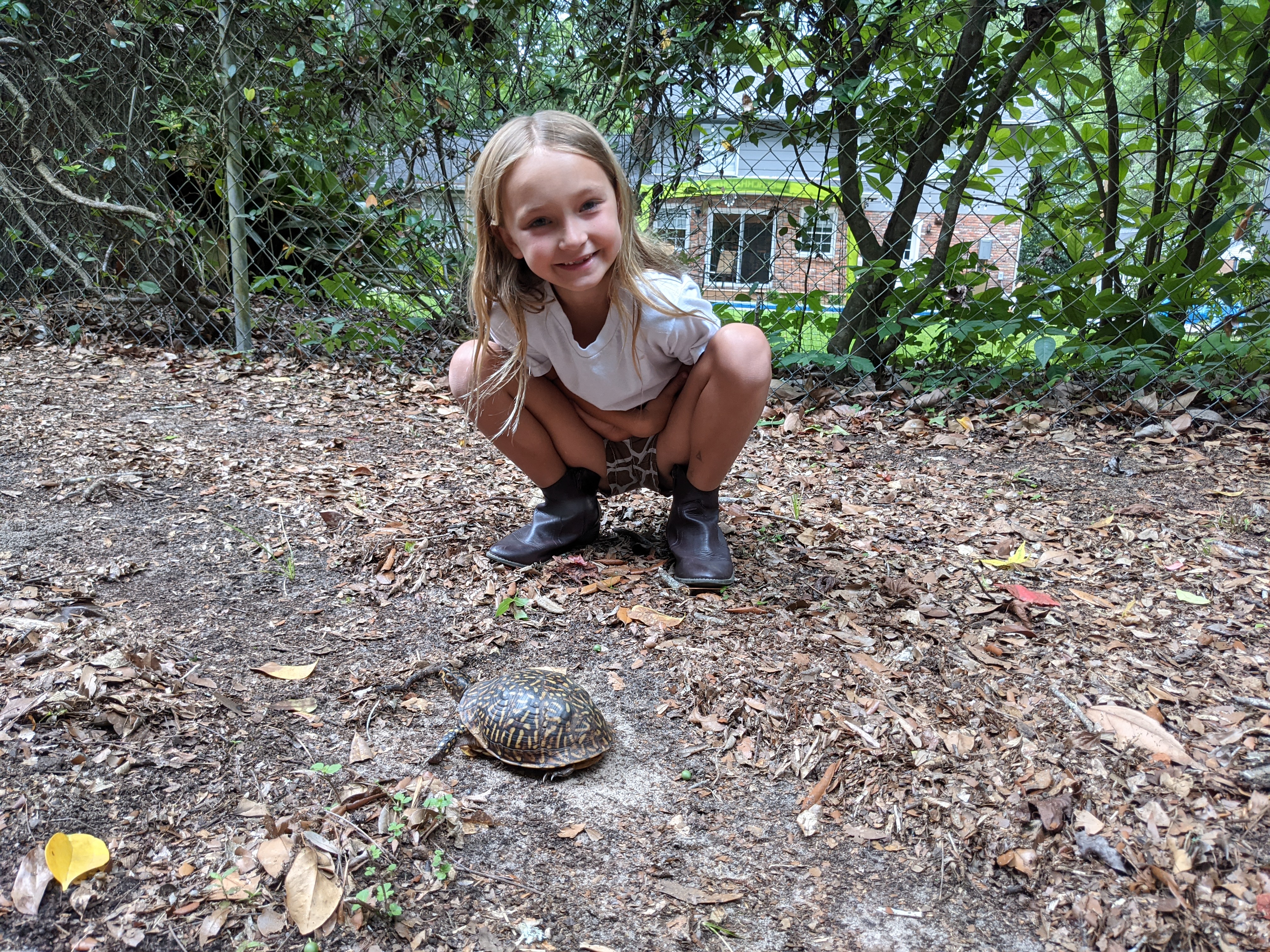 - In local animal news, on our July 4th walk, we saw three bunnies. Haven’t seen any in our yard for a while so that was nice. Wednesday morning when leaving to take Koda to camp and go to work, we stumbled upon a box turtle right in front of the gate. Had to move the little guy in order to leave so we took him out to the easement. Funny thing is that we left one year ago around this time for our vacation, and just before it, we found a turtle in the front yard and moved him to the easement then too. Last year and this year photos below.
