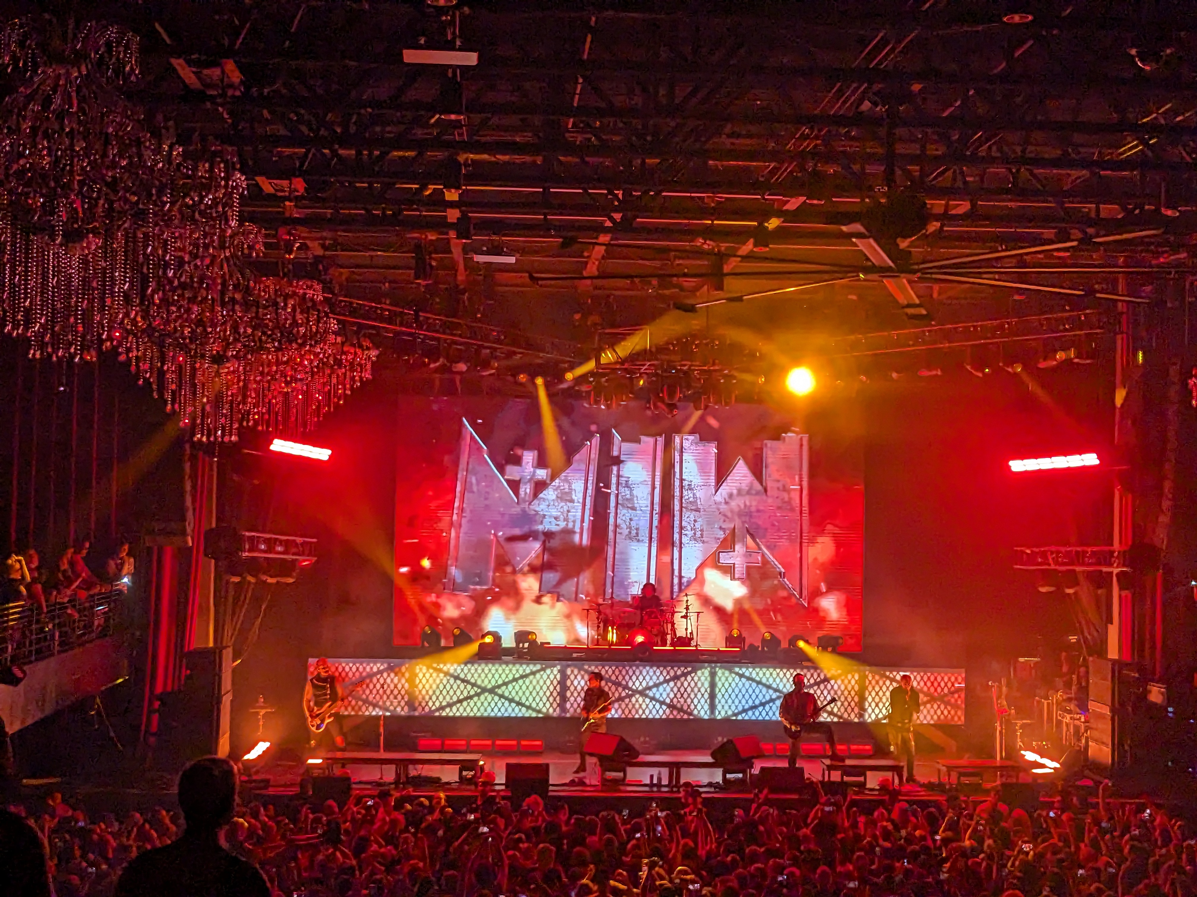 Finally, it was time to head into the Roxy. See, I have an online friend (who I did meet once in real life) who was there and she was keeping me apprised of when the first two bands ended. Got inside and bought some Knocked Loose merch and grabbed a drink, then found our seats. My friend may have told me we had seats in a row together but I’d entirely forgotten if she did, so that was a pleasant surprise. Because I’m too old for a pit in GA, I was glad I was up in the balcony; but we had a good view.