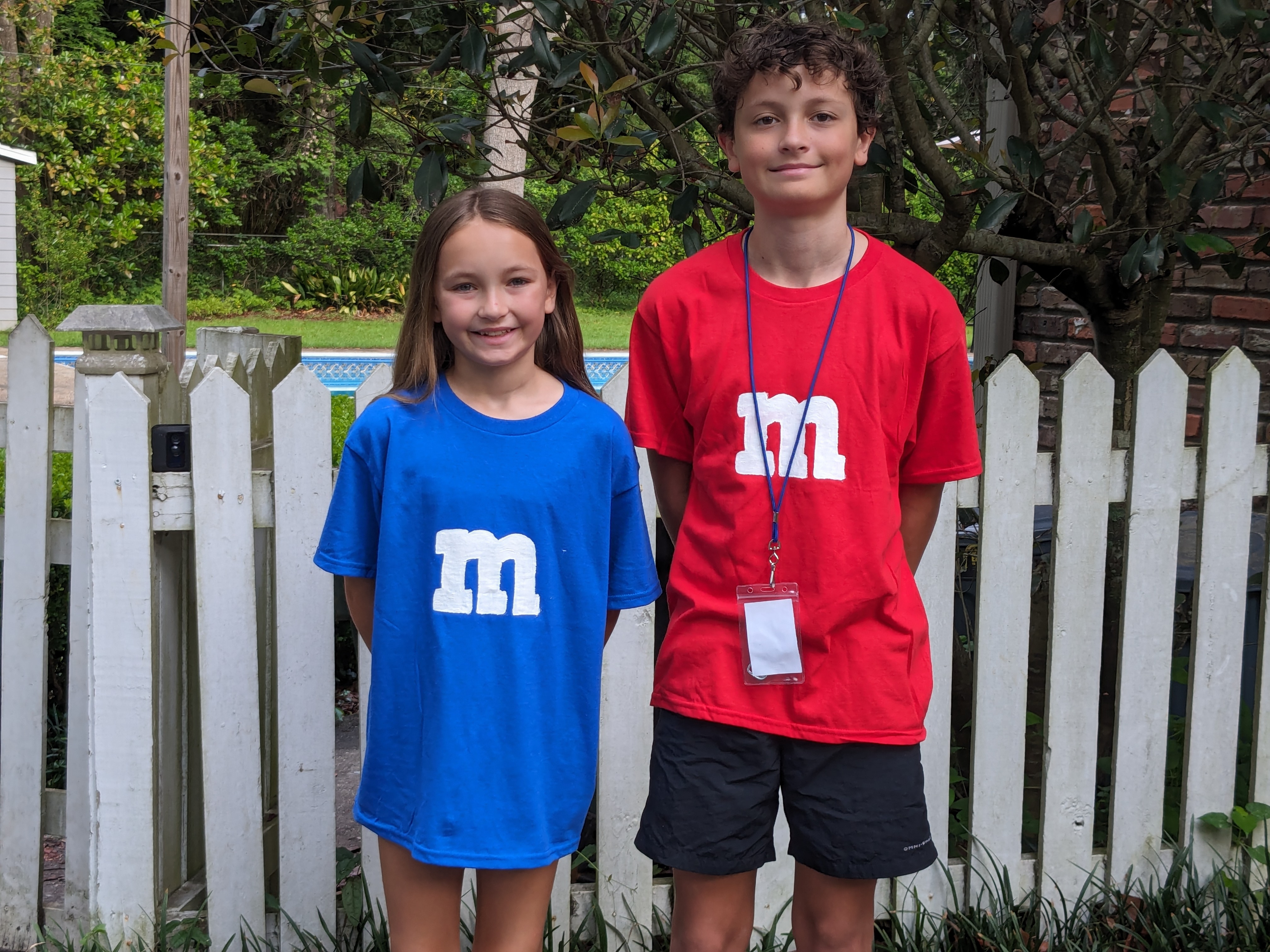 13. OK, I have a bunch of papers to get graded and since I’m rewarding myself with a 2:30 leave time, I have a goal. I am very excited about that but have to buckle down first. Enjoy this photo of my kids for “better together” duo day at camp. I suggested salt and pepper shakers but they wanted m&ms. Yes, I painted them.