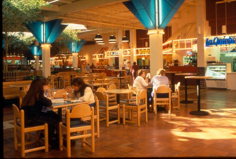 After blowing almost all our money on comics and cards, we went to the food court and had tacos at Taco Viva. I recall the food court looking like the below, though as it rounded on either side it had steps so it was kind of an amphitheater shape.