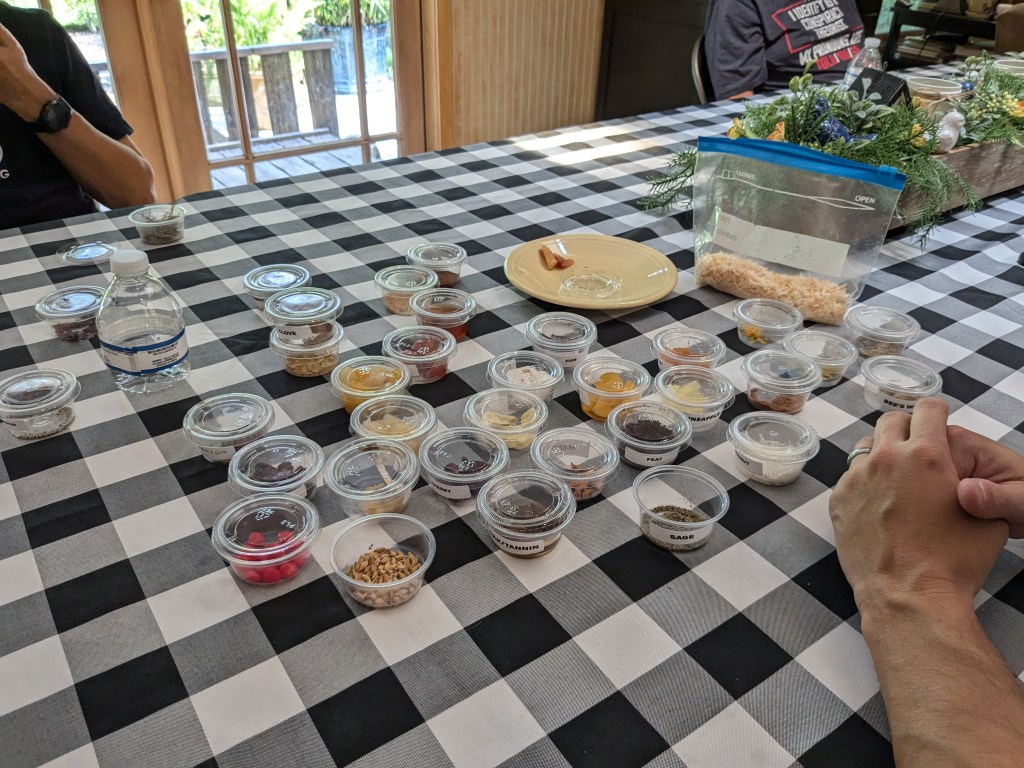 We headed to our event after: a “tasting adventure” run by a couple guys from the Gainesville homebrew club. Theirs is gigantic compared to ours, as they have almost 200 members. Granted, it’s probably the same 30 or so who do everything but still, much larger. There were about 20 people at this one so that was cool. Essentially, they prepped these containers of things you’d typically find in both beer and whisky and we smelled and tasted then sampled drinks to try and pinpoint those flavors in there.