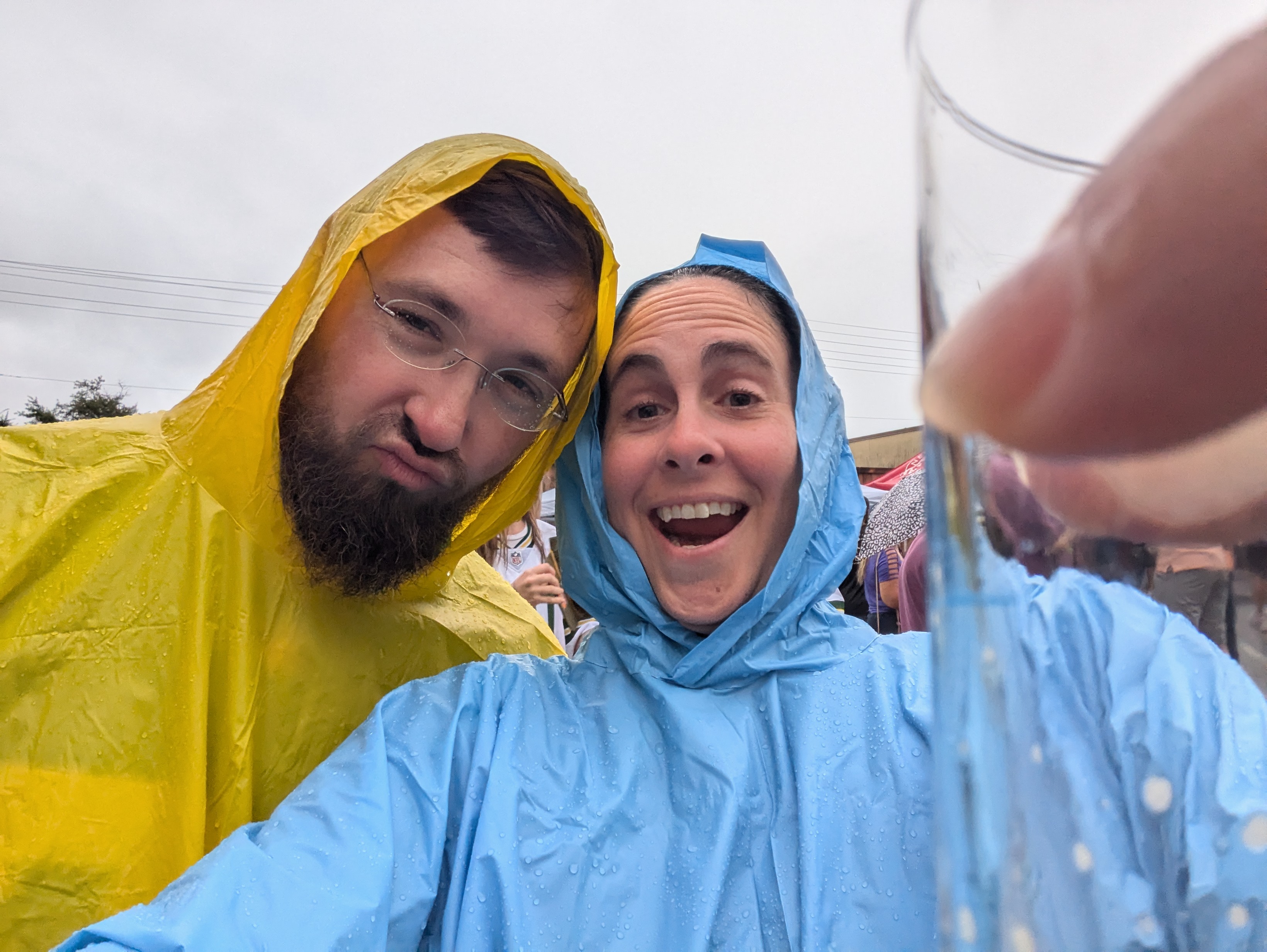 My sister’s boyfriend works at the place that was hosting the location (they own the entire block, actually) so he got in for free. We met up and he said he thought he had ponchos in the car – score! We sent the umbrellas back to my parents’ with him and the ponchos made it a lot easier. We were pretty worn out by the time we booked the uber back. It wasn’t even all that late, thankfully.