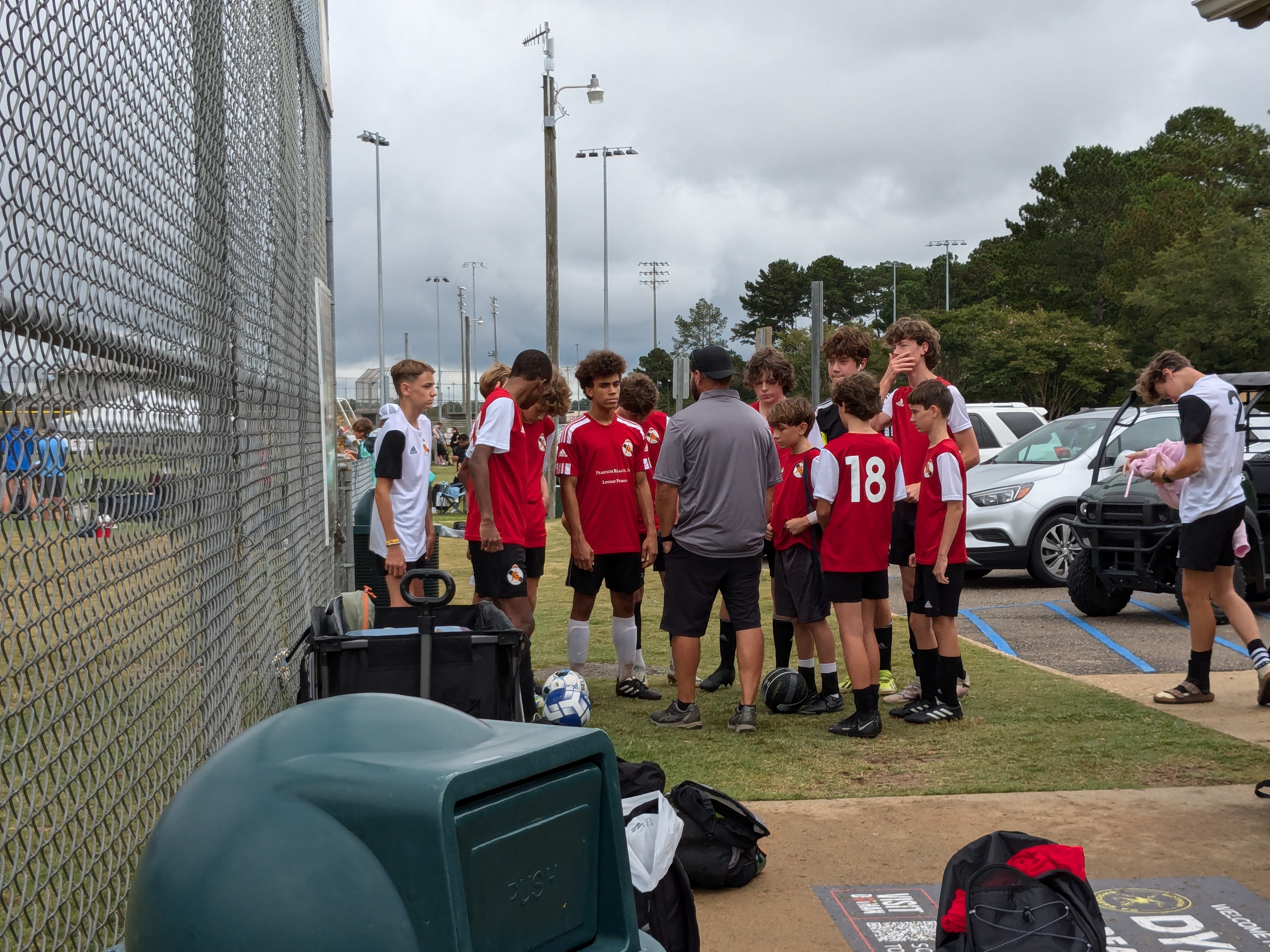 Meanwhile, Isaac and I didn’t leave until about 9. Originally, I planned to stay with my uncle in Enterprise, which is about 35 minutes from Dothan. But as we were talking that morning, my parents sort of talked me out of it. Really, it was because of the gap between games. His Saturday times were 12:30 and 6:30; what were we going to do in the interim?? So I just bit the bullet and booked a hotel room. So he and I left and went straight to the soccer complex. He didn’t play great in game one but they tied 0-0. I had to laugh because their keeper is this kid my oldest son played on teams with a long time ago. We always called him “pirouettes” because he often did little dances out in the field. LOL. He’s grown a lot since then though.