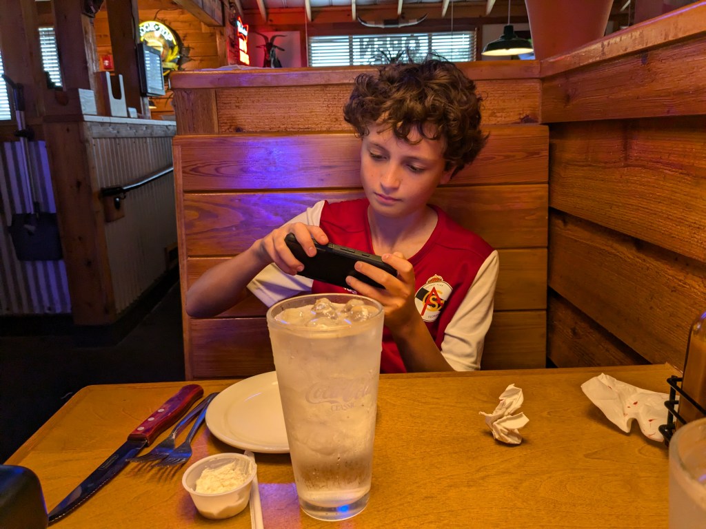 In between games, Isaac and I got some food then checked into the hotel and subsequently took naps, which was really nice, given just how much activity we’d had up to that point. We went back to the field for his night game, which gave us a fantastic sky, even though it was still generally cloudy. I was just thankful it didn’t rain on us, which had been the assumption. I even told my daughter, who wanted to go with me instead of back home, that she’d have been miserable sitting under an umbrella out there.