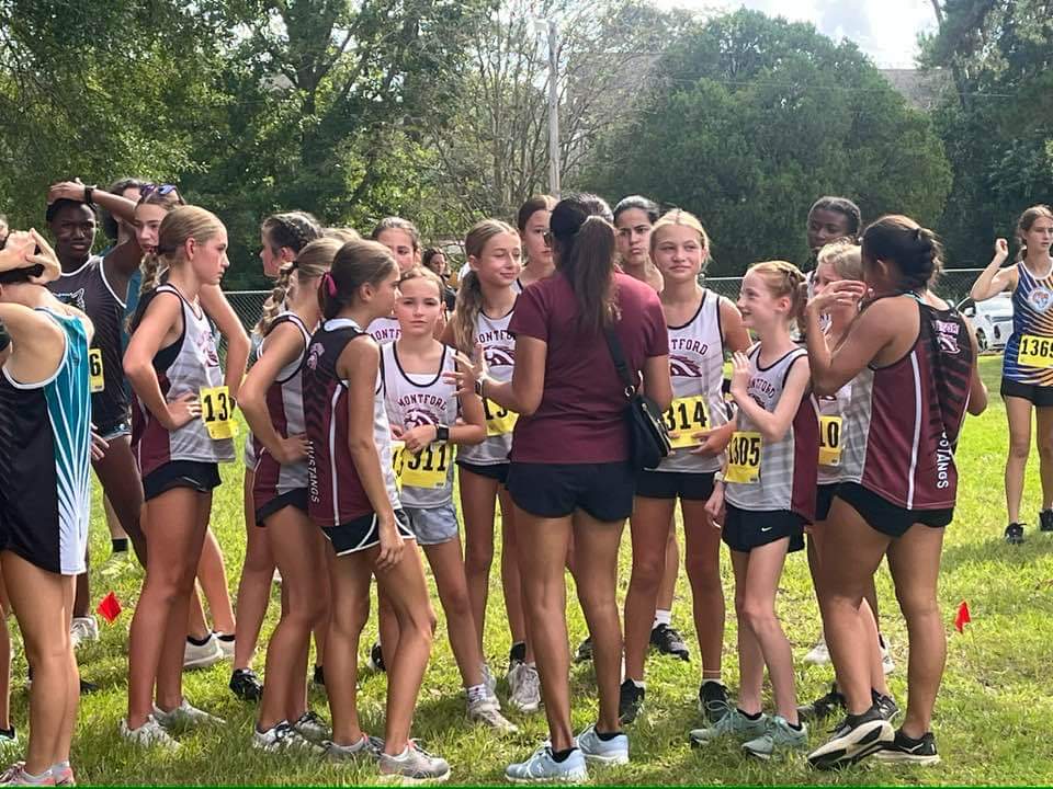 Next, this shot someone took at said meet, which shows her with her team, looking at the camera: