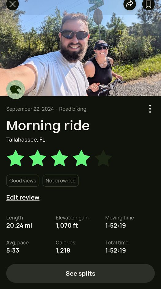 Sunday morning was bike ride morning and we planned to do 20. We rode 15 last weekend so it was time to up. Ash suggested the Bradley’s route, which is named as such because it is across the street from the country store of the same name, a staple of old Tallahassee culture. He has run that route many times. It was about 2 miles paved until the red dirt, which he assumed was the whole way but was actually only four miles, then it was paved until we got to ten and turned around. It was not an easy ride but it was worth it.