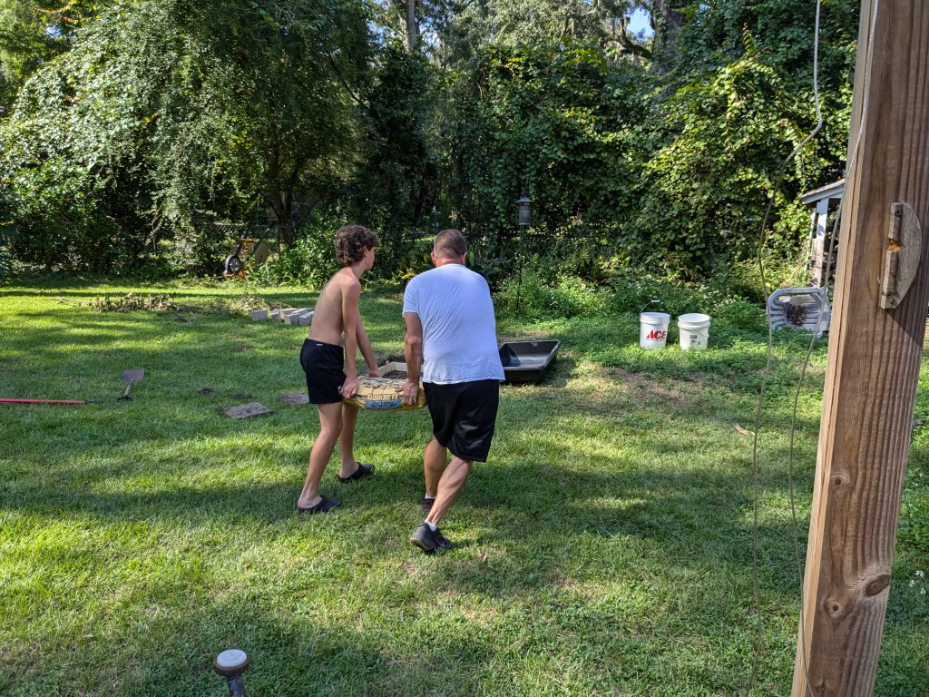 It was nice to have a little help from them. Would have been better had my oldest been able to carry heavy concrete bags but he had work. We got finished with all 6 and still felt we needed more so I took Isaac with me and we snagged two more, which ended up being enough.