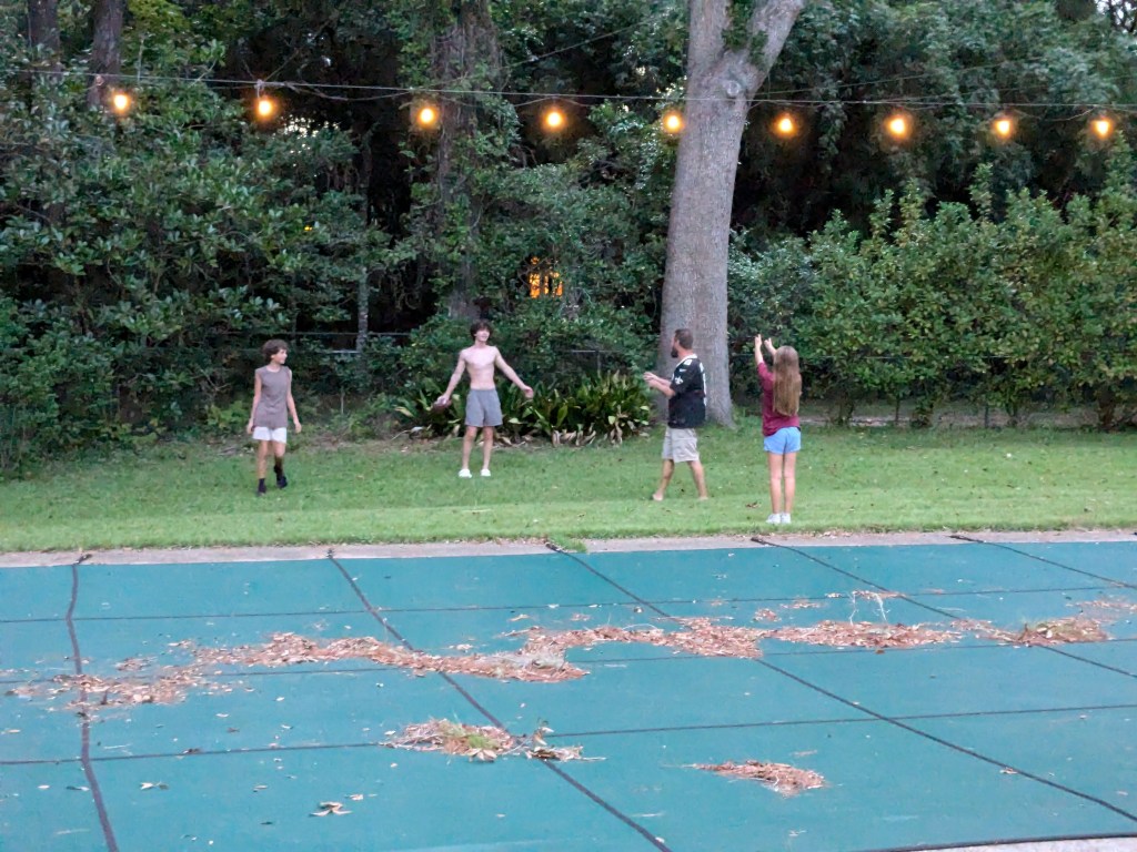 We put a cover on our pool around this time because believe it or not, the air gets cool enough that the pool is simply too cold. We open it up around April. We did close it slightly early due to the storm. We lived through hurricane Michael without the cover and never again do I want to dredge a 20×40 pool!