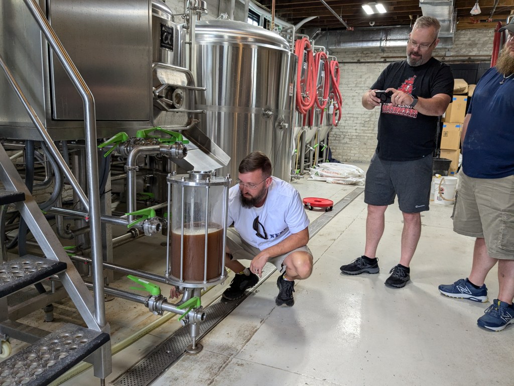 Saturday was our planned collaboration brew with a local brewery. We’ve done a couple before and they’re always fun. The other breweries have traditionally been really accommodating and let us do a good bit of the work, from pouring in the grains and other water adjustments to flipping valves and all that. This one was no different and Sheldon was super nice to us. They usually let us drink a few free beers too so, no complaints! I had to leave by 1:30 to get to Isaac’s second soccer game. Ash tried to get there but as he is brew club president, he had to stay for the whole event. (Below, Ash and I both doing something during the process.)