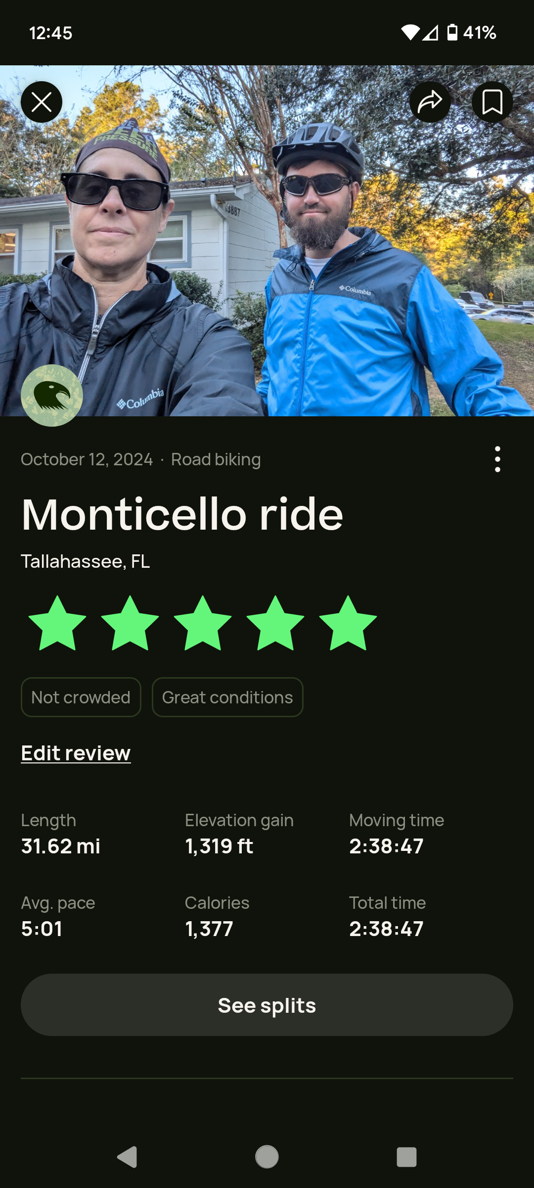 It was COLD that morning (upper 40s when we started) so we both left our jackets on. The big thing is that we were not on road bikes so we didn’t try to “race” anyone, not that it was one. It was simply a ride. We were really just doing it to train and get mileage in. There were 30 and 60 mile options, paved and unpaved. For our paved 30, there were really only about 9 of us doing it and one guy was about 90 years old on an e-bike. I would fall behind on a big hill and here old buddy comes, just pedaling away like he’s fooling people. Yeah, I could get up this hilly easily too if I had a motor. Come on, bro.