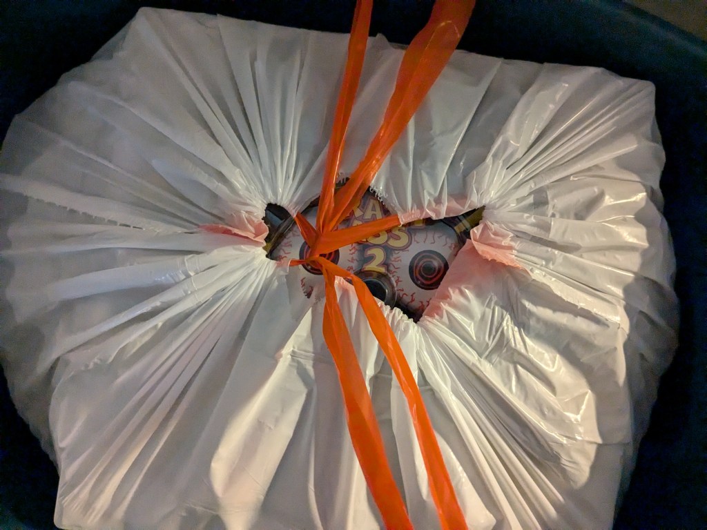 Throwing away this old hot sauce sample thing and the way these creepy eyes looked at me: