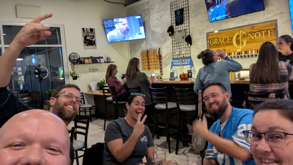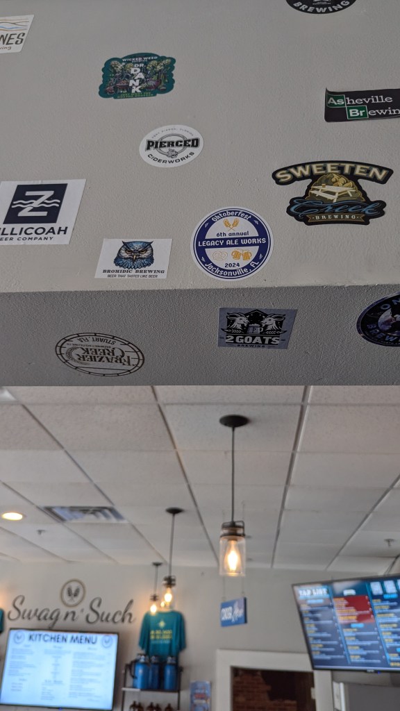 We got to Legacy ale works at 12 to set up and picked a spot inside. It was an odd festival in that it was at their taproom in a shopping center so, they had homebrewers set up in their courtyard and inside. Kind of crowded but it worked. We began pouring to ticket-holders at 2 and by then, we’d made the rounds to others’ tables. We knew quite a few other brewers there from previous events this year so it was neat to see what they brought. By the time it was winding down at 5, we were pretty tired. The guy wearing the bunny ears is a guy we met from the Jax homebrew club and he’s been super nice to us. He helped us judge our in-club competition and has helped us with other things for our club.
