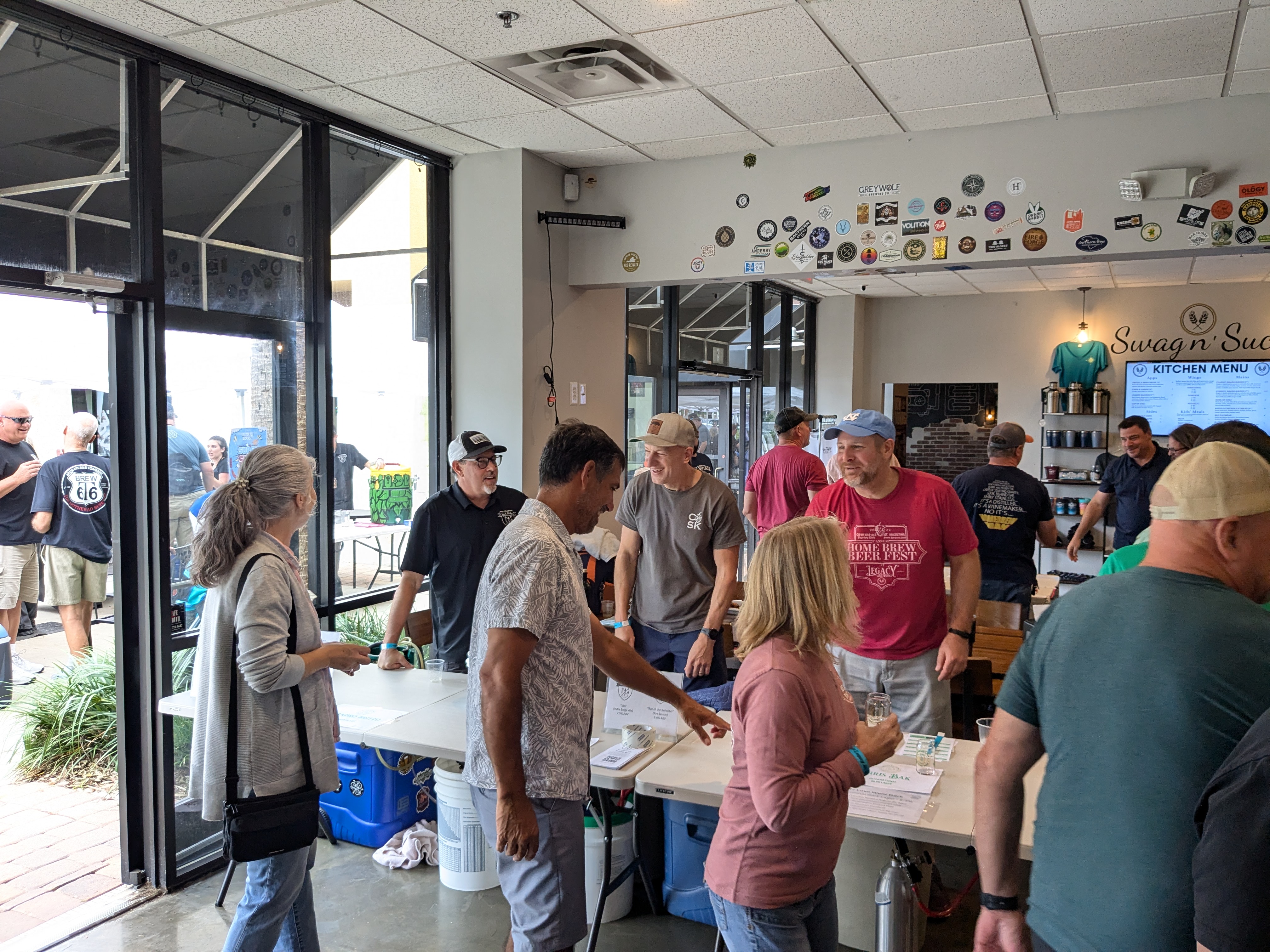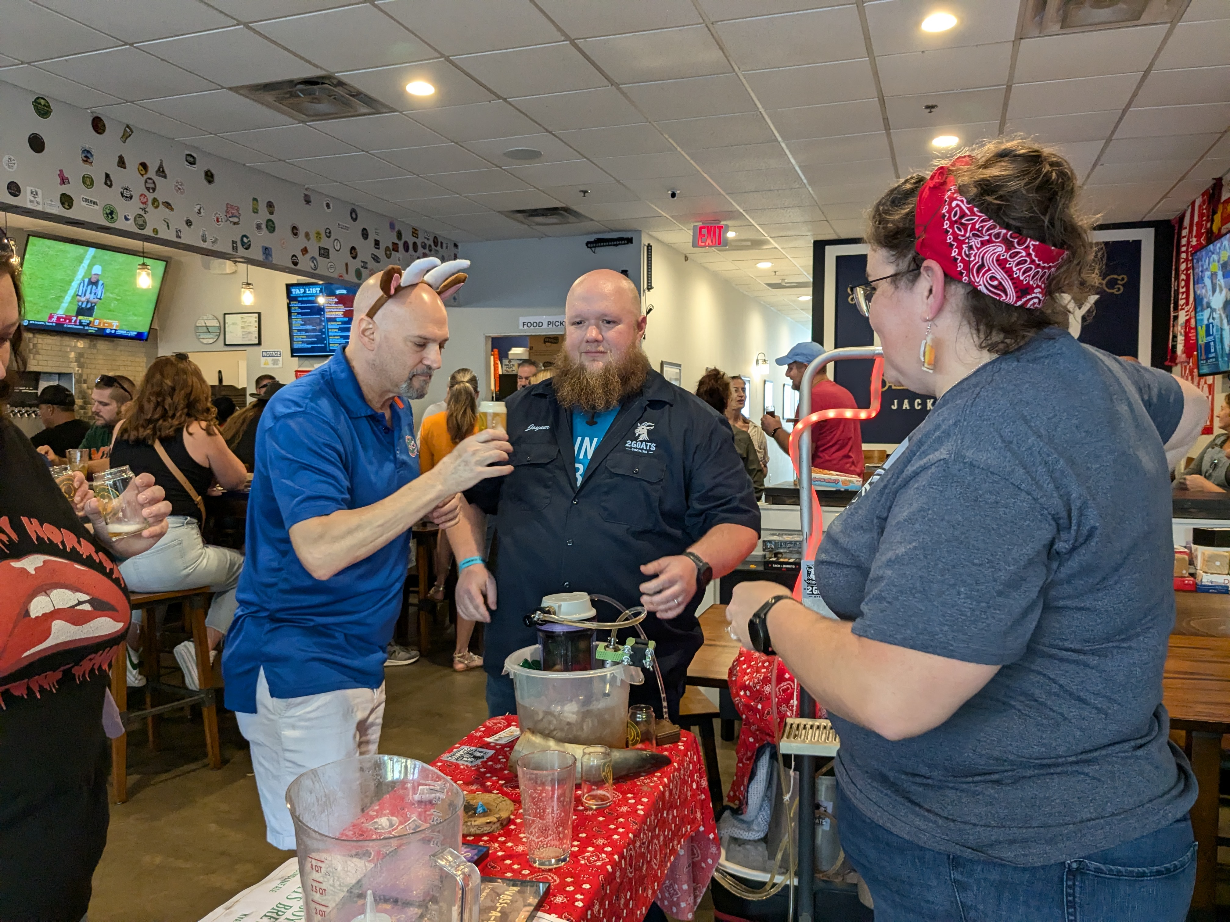 We got to Legacy ale works at 12 to set up and picked a spot inside. It was an odd festival in that it was at their taproom in a shopping center so, they had homebrewers set up in their courtyard and inside. Kind of crowded but it worked. We began pouring to ticket-holders at 2 and by then, we’d made the rounds to others’ tables. We knew quite a few other brewers there from previous events this year so it was neat to see what they brought. By the time it was winding down at 5, we were pretty tired. The guy wearing the bunny ears is a guy we met from the Jax homebrew club and he’s been super nice to us. He helped us judge our in-club competition and has helped us with other things for our club.