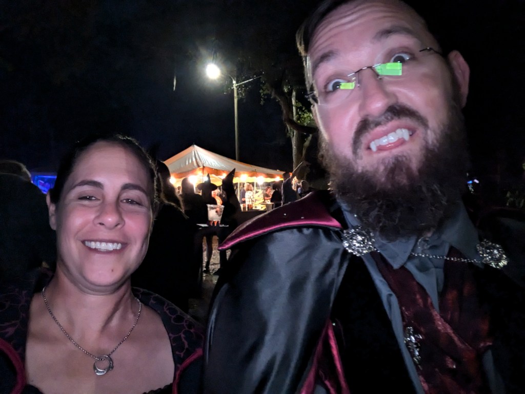 Then, it was Zoobilee time. It’s a long-time tradition here in town and the best way to describe it is an adult costume party with all you can eat and drink. Ash and I had friends going who’d convinced us to go. I think we got our money’s worth, with a total of 8 beers and multiple plates of bbq. If I’d been in the right mood I’d probably have tried a lot more of the other food. Only took one pic because it was chaotic, but I think we had fun.