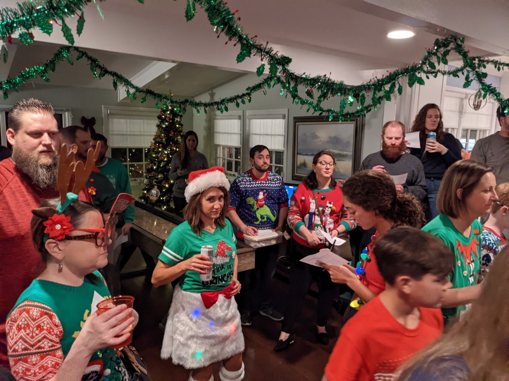- Yes! We always host a Christmas party – well, ok, this will be our fourth year hosting a huge party. These are typically highly attended – between 80 and 100 or so folks – so yes, I will be planning for that soon. As well, since Ash is the brew club prez this year, we’ll be hosting a party for those members the Saturday before! I love the picture I took during our first one because my friend, Courtney, in the middle there is giving me “a” look.