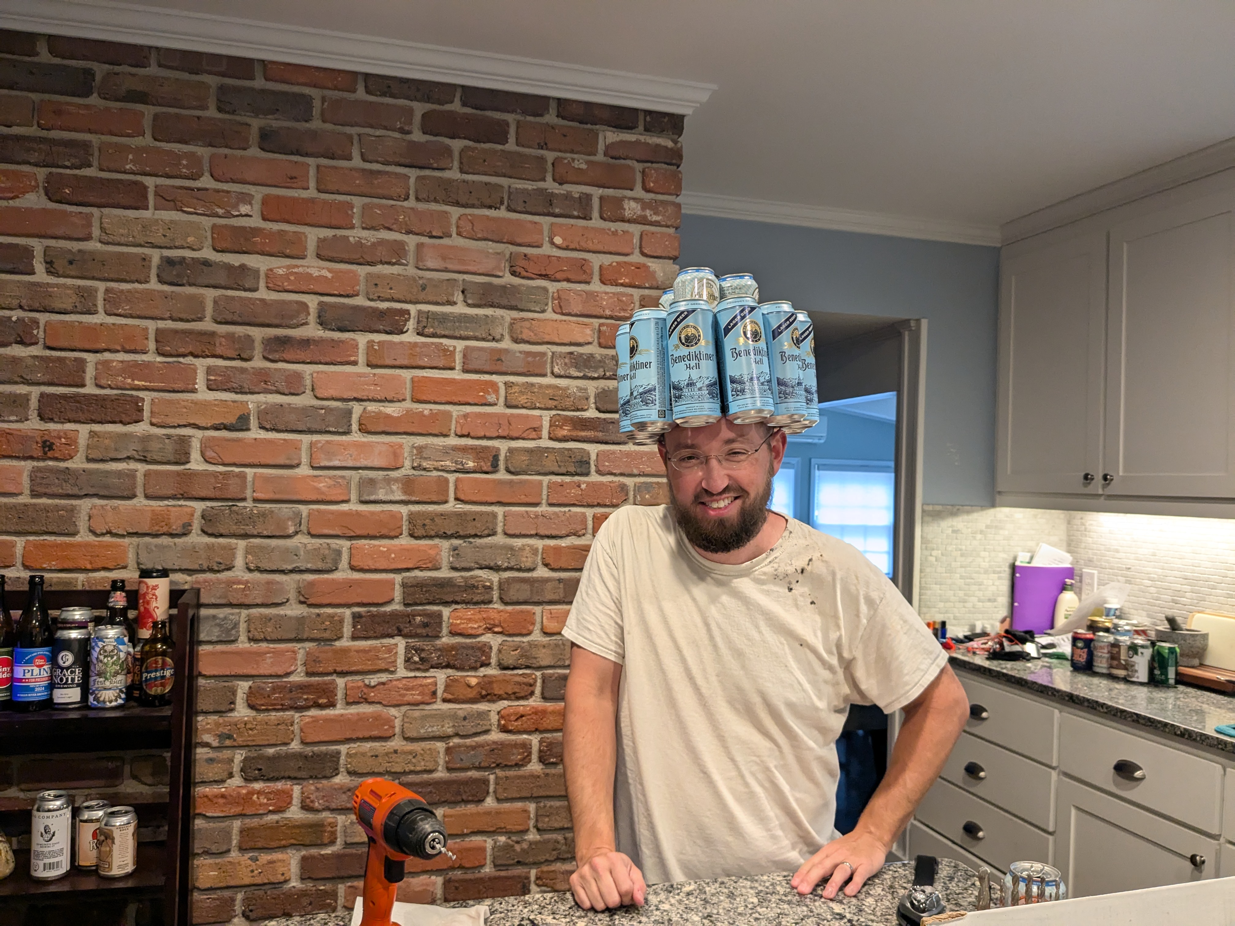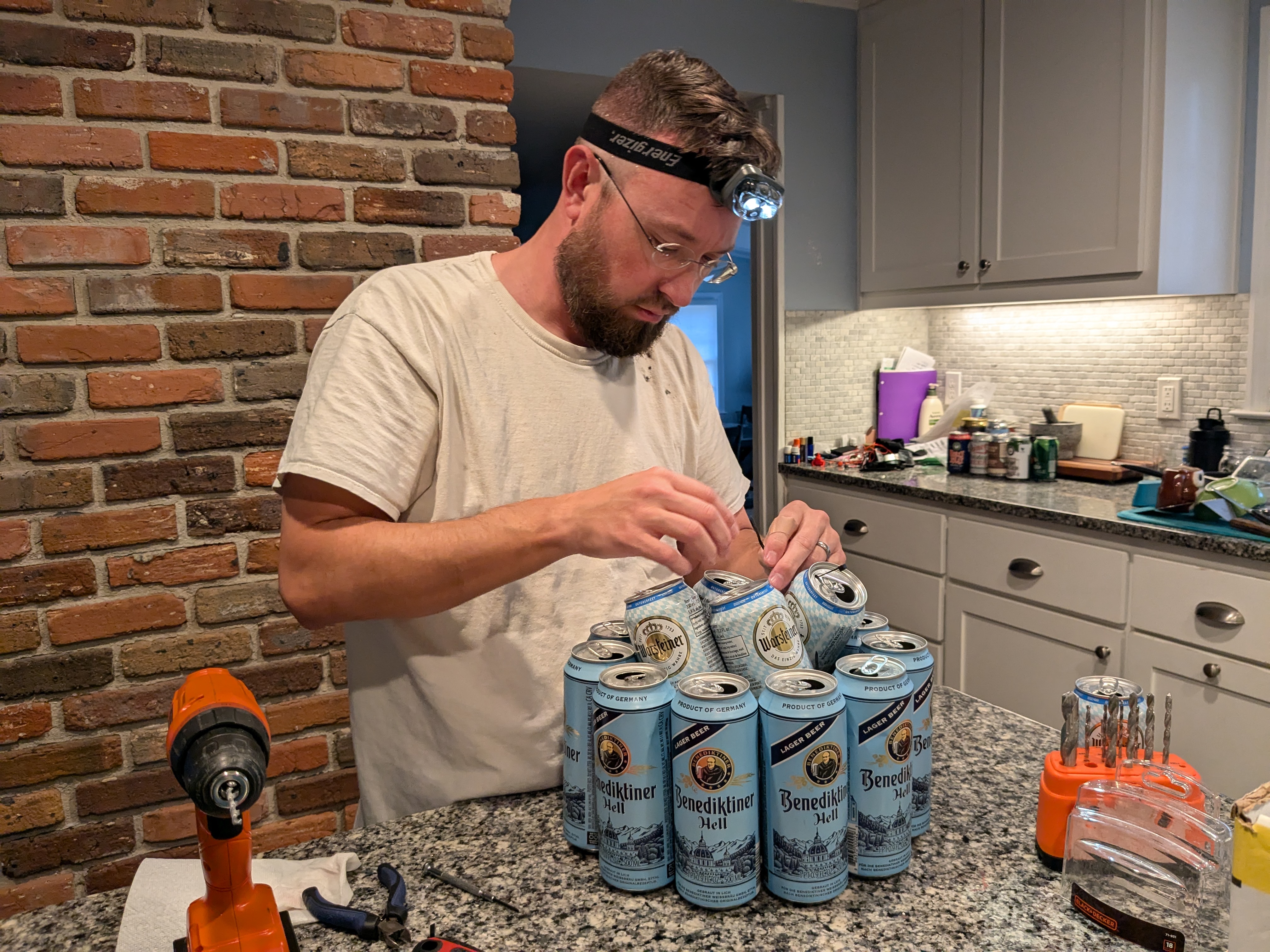 Ash was determined to build the crown; we made brew club more interesting this year by keeping a tally of who brought the most homebrew to meetings and then we promised a crown for the winner. He’s been thinking about it for months now but finally enacted his plan. It’s silly and we already know who the winner is, i.e. whose head it will sit atop, but it’s done.