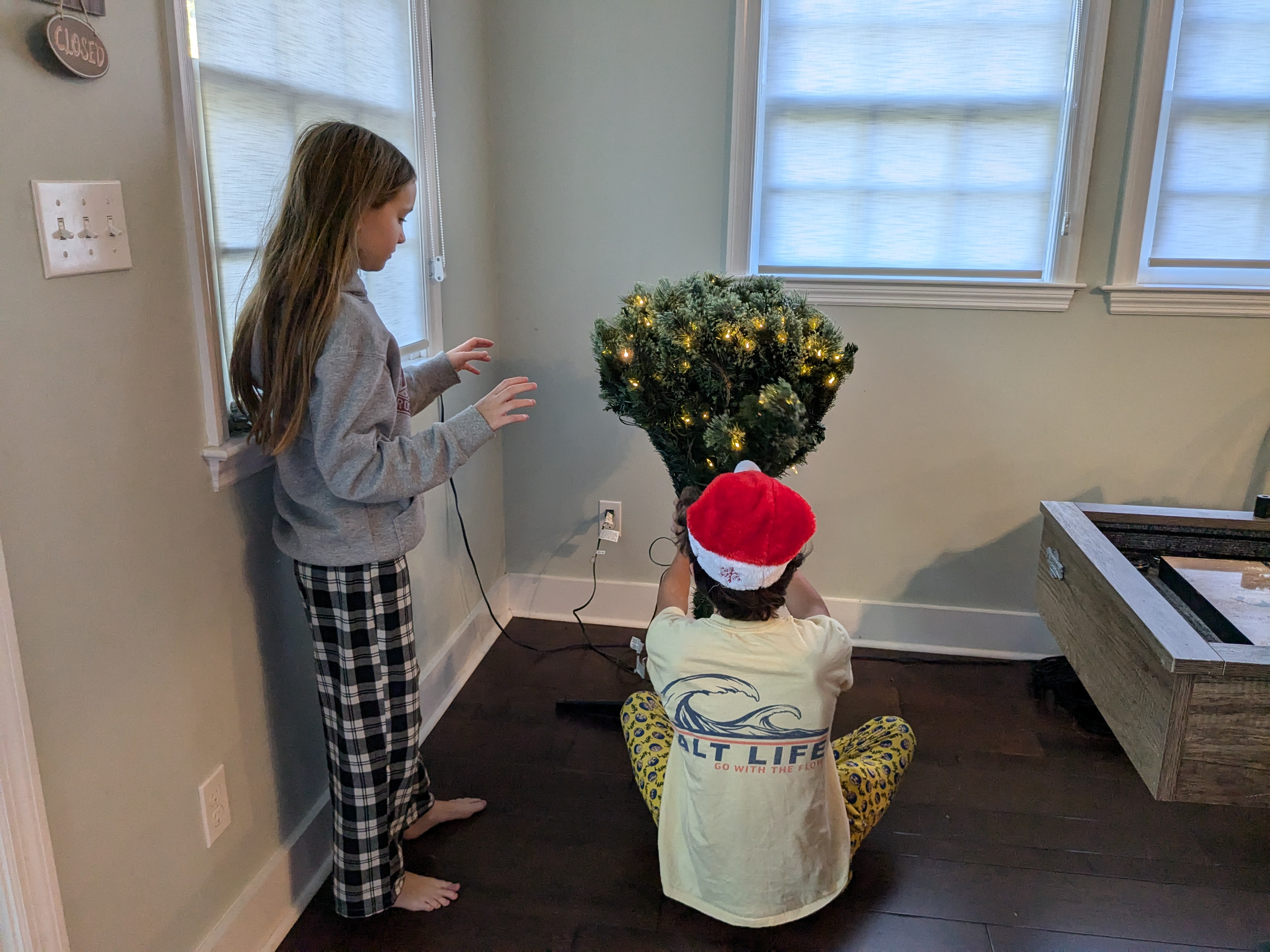 We also got down all the Christmas stuff on Friday and the younger two began setting up.