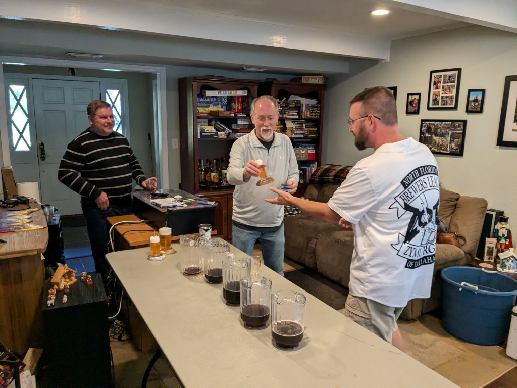 I got up Saturday and began doing some last minute things like making deviled eggs, cleaning up the yard, etc. We had folks show up around 11:30 and the homebrew club party was underway.