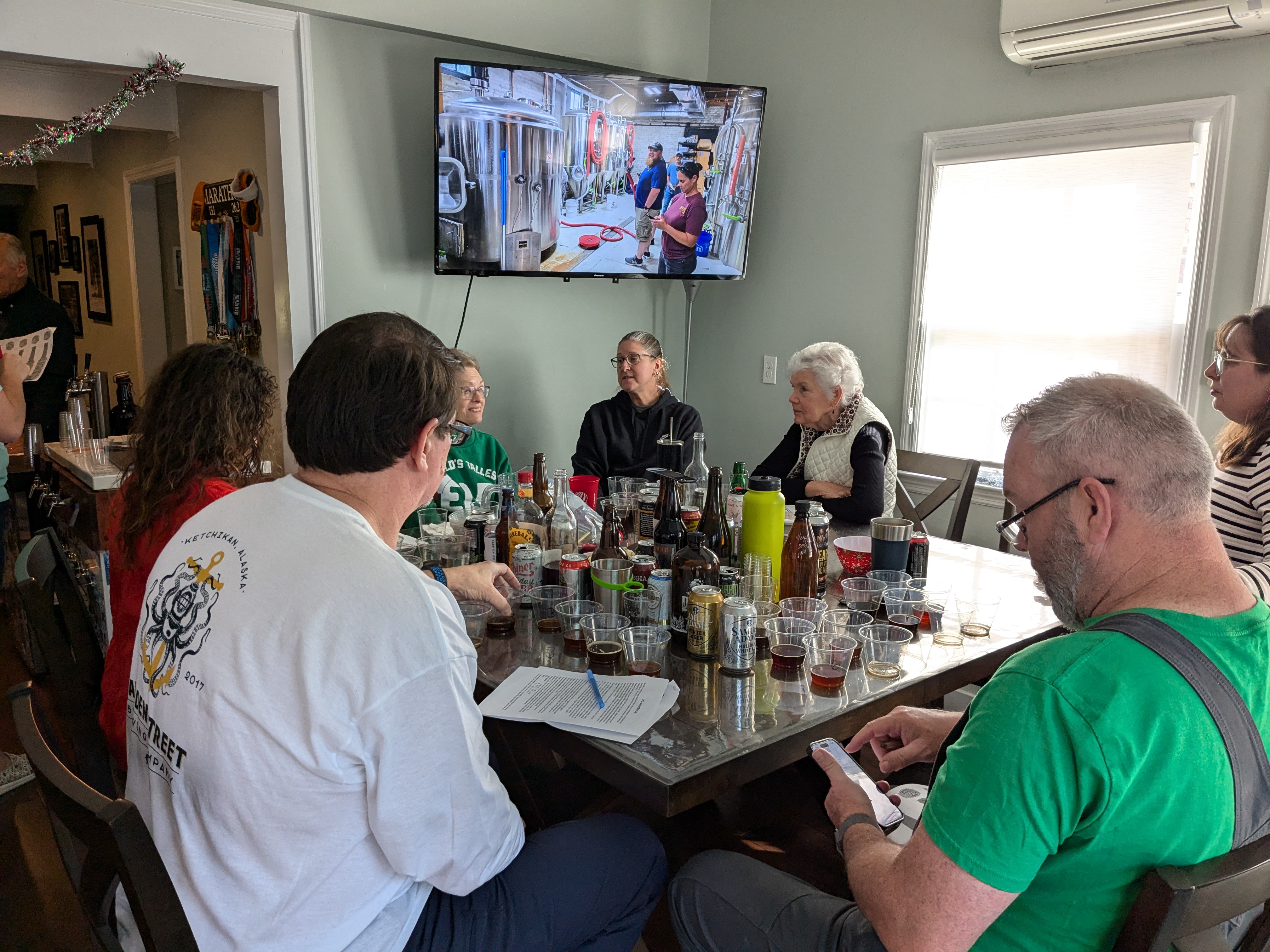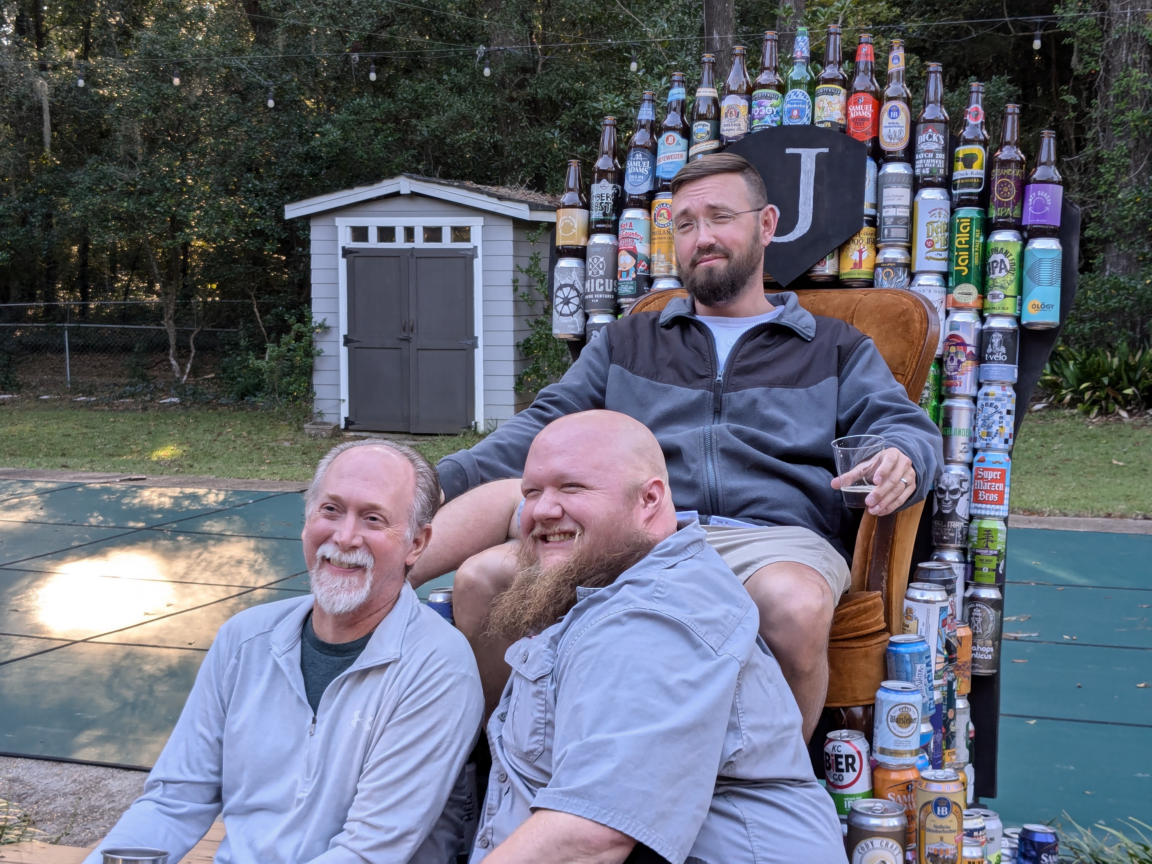 Both Ash and Joyner attempted beer crowns and then our other friends made the throne The bigger guy there, Mike, was the person who brought the most homebrew last year so it is actually “his”, though each year a new person will get to achieve this goal, should they so choose. His wife made the crocheted beer glass – “Steiny” as they dubbed him. All in all, a good time. I think the last person, our VP, left around 7 and after putting some leftovers away, I sat down to relax!