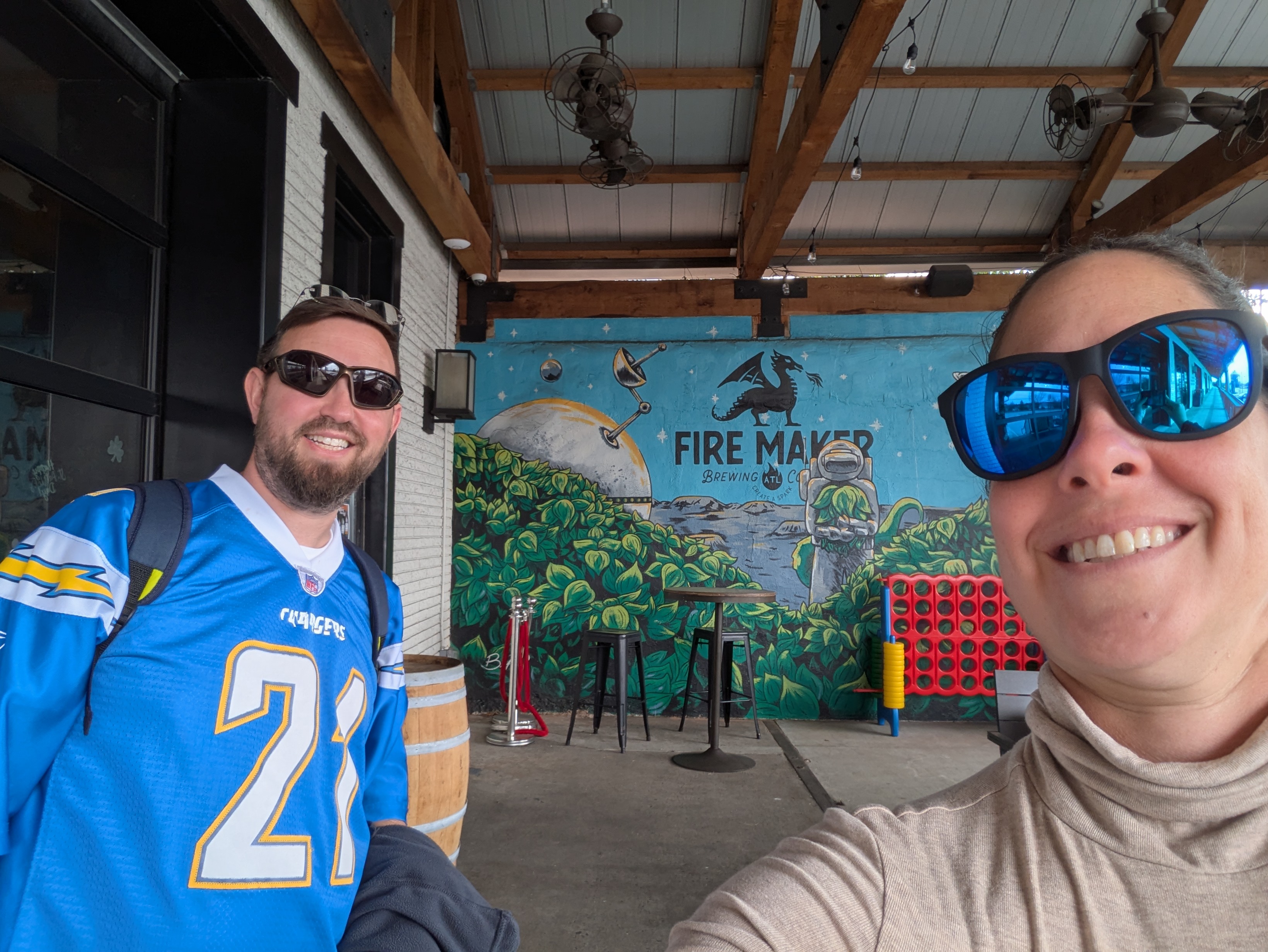 Just as we got into the uber, I had the weirdest all over tingly sensation and of course, it coincided with feeling car sick, JUST LIKE LAST TIME WE WENT TO BOLD MONK. Sigh. It was a long 25 minute drive and when we got out, I had to just stand there for a second as to not throw up. But all was well; we got in, ordered breakfast and beer, and I started to feel good again. Bold Monk is so cute and a great place for brunch. We were a little disappointed because the last time we went, the biscuits were huge! They were normal sized this time but still tasty. We left there and walked to Fire maker, to give it a second shot. It has a really high rating on Google reviews and last time, it made no sense…and it still doesn’t. We had 3 very tasty beers and 3 I wouldn’t foist on my worst enemy. Oh well; we gave them the chance anyway.