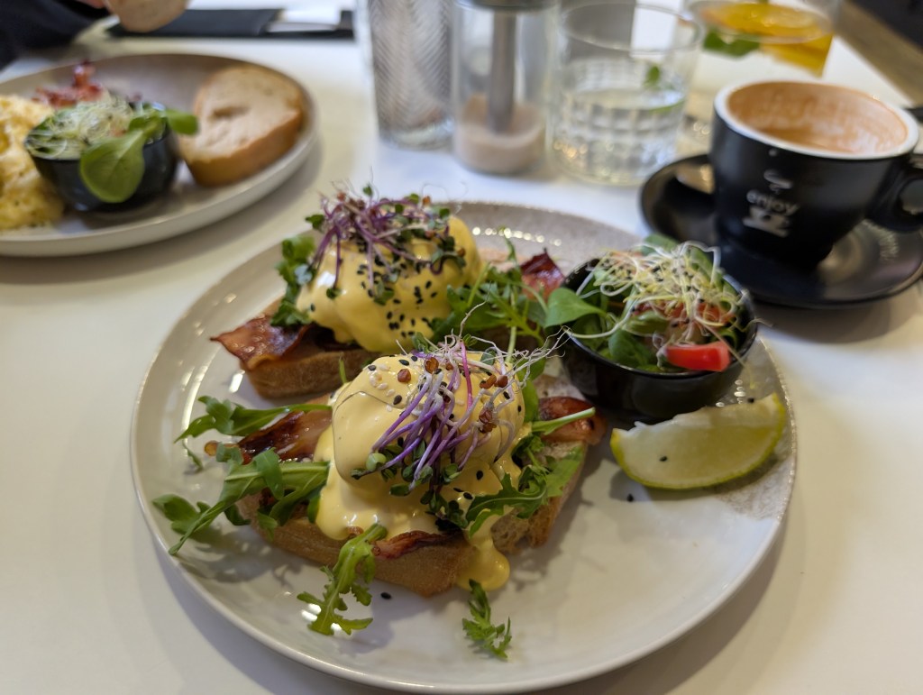 The next morning, we walked to a little brunch place and had some decent food; I had eggs benedict and Ash had their eggs and bacon. The plan had been to walk to the Pilsner Urquell brewery and take a tour but once we got there, found out all the English tours for the day were sold out! Ash was not happy; this had been one of the things he had to do. Guess we should have booked ahead. We did manage to get some cool signs in the gift shop. The area in front of the brewery was having a little street food festival for burger food trucks, so even though we were not hungry, we had a beer there.