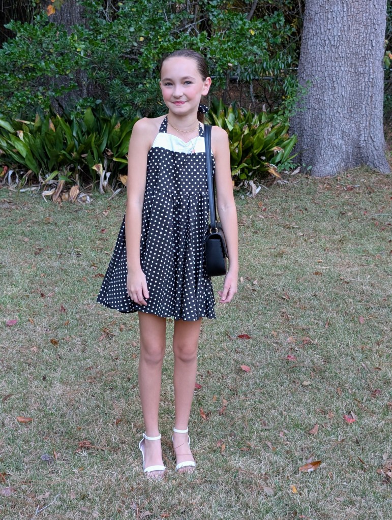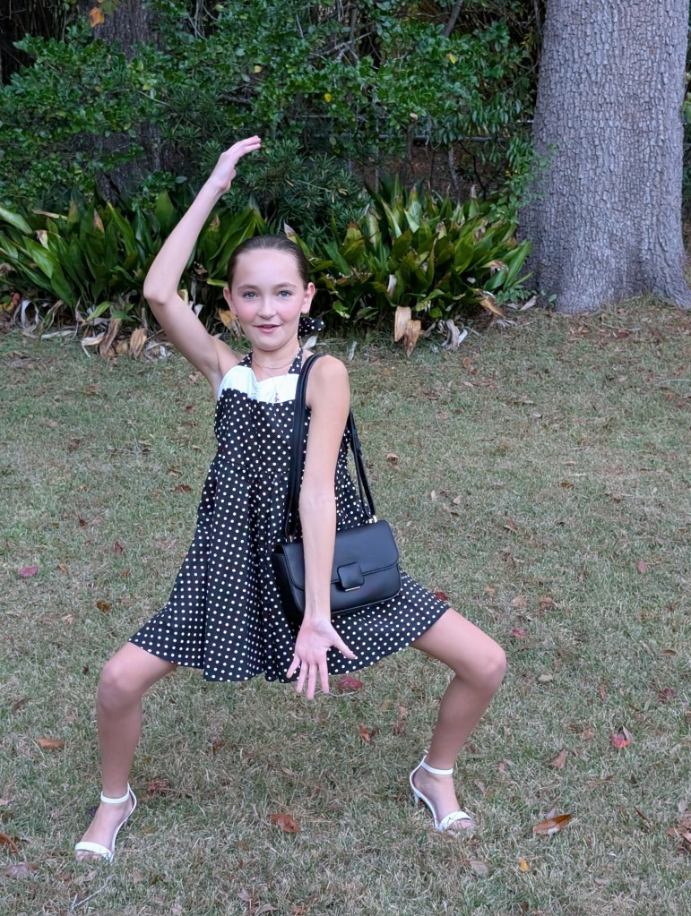 Anyway, Friday, I got home and helped my daughter get ready for her dance. I don’t know why she does that pursing thing with her mouth but that’s her. She took a serious photo and her dumb 6-7 photo. I am OVER the 6-7 craze.